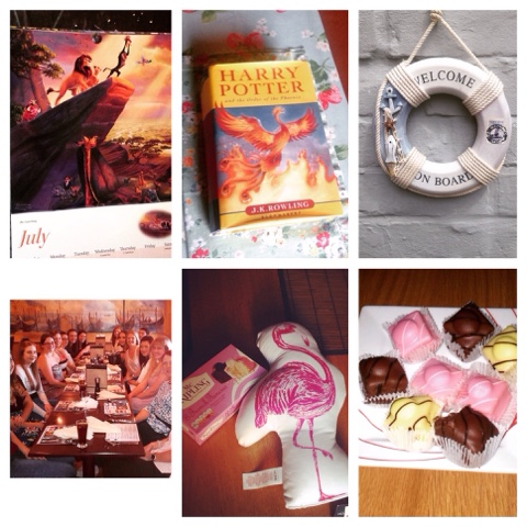 Lion King on the calendar, latest Harry Potter, cute nautical sign, dancing meal, flamingo cushion and French Fancies.